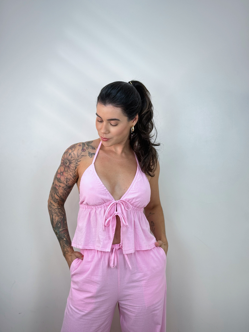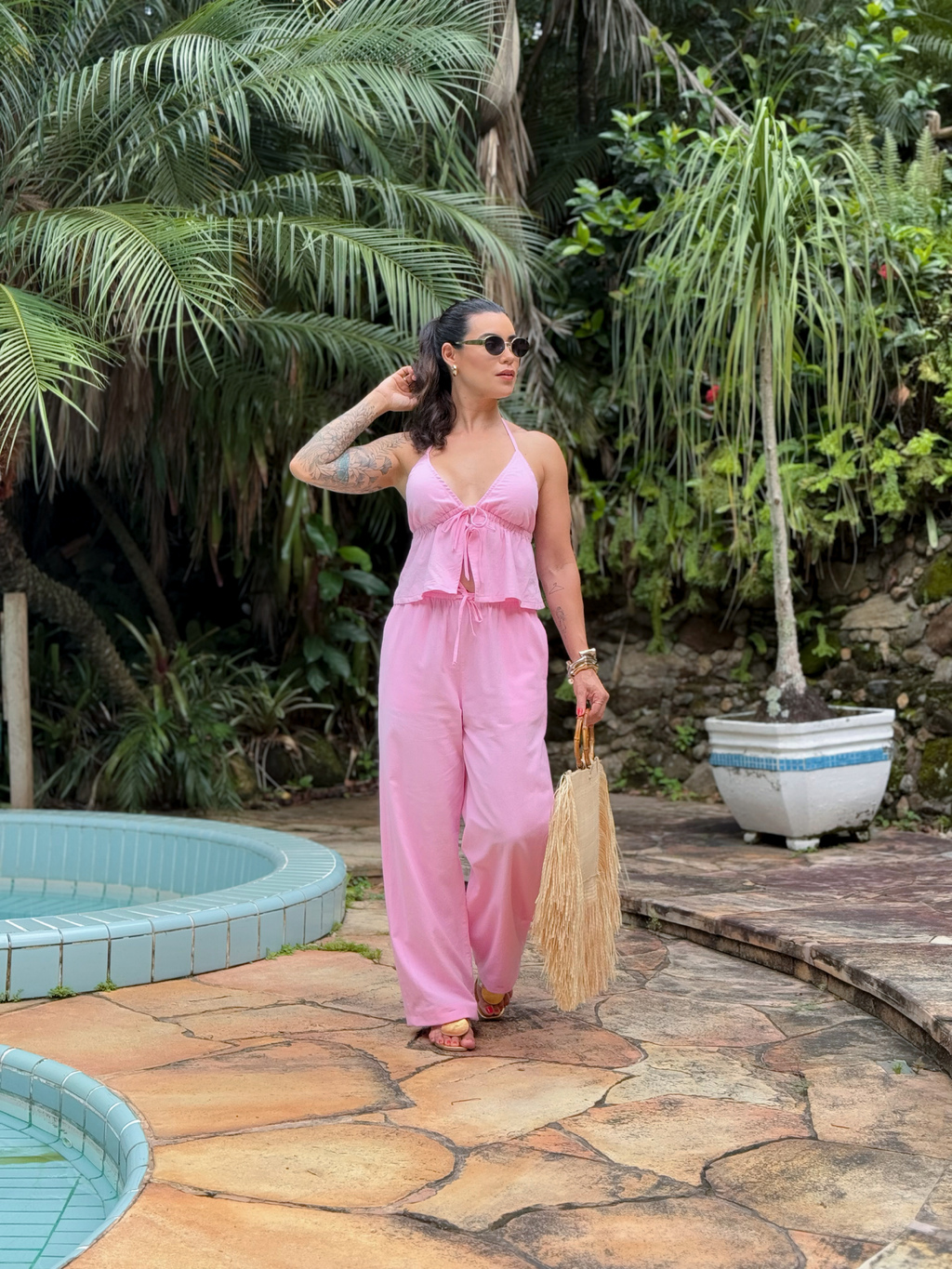 Com design frente única, possui amarração no pescoço e busto com ajuste e amarração frontal, ela se ajusta perfeitamente ao corpo, realçando suas curvas. O detalhe de babado na barra adiciona um toque de sofisticação, tornando-a perfeita para diversas ocasiões.