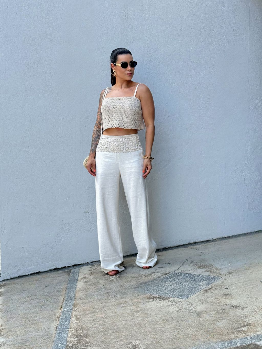 Com um cós bordado que adiciona um charme especial, esta calça é ideal para diversas ocasiões, desde um passeio casual até um evento mais sofisticado. Confeccionada em tecido leve e confortável, possui cintura alta, fechamento por zíper lateral e forro. O seu design moderno e modelagem reta, combina facilmente com diferentes peças do guarda-roupa, tornando-a uma peça versátil e indispensável.