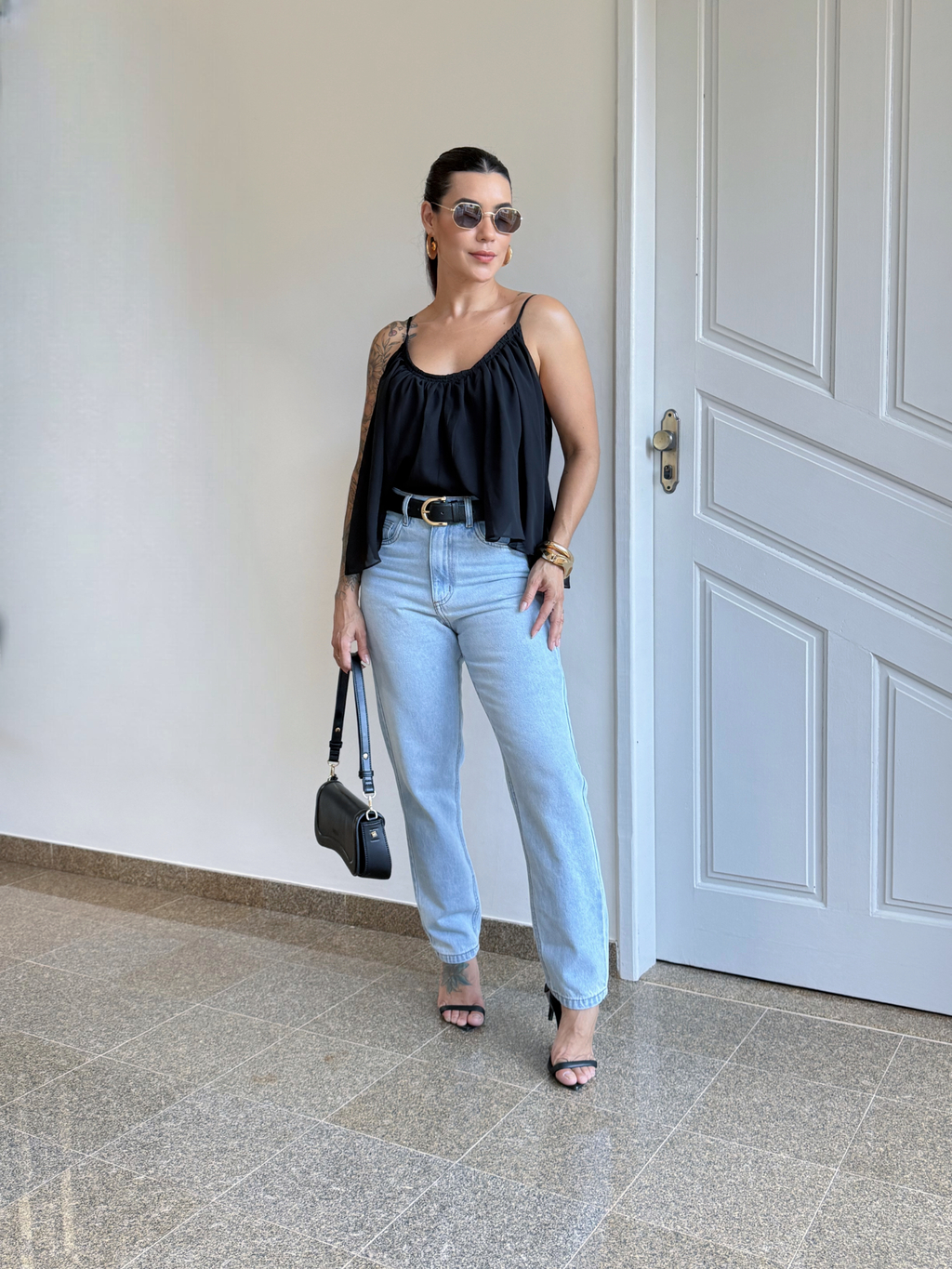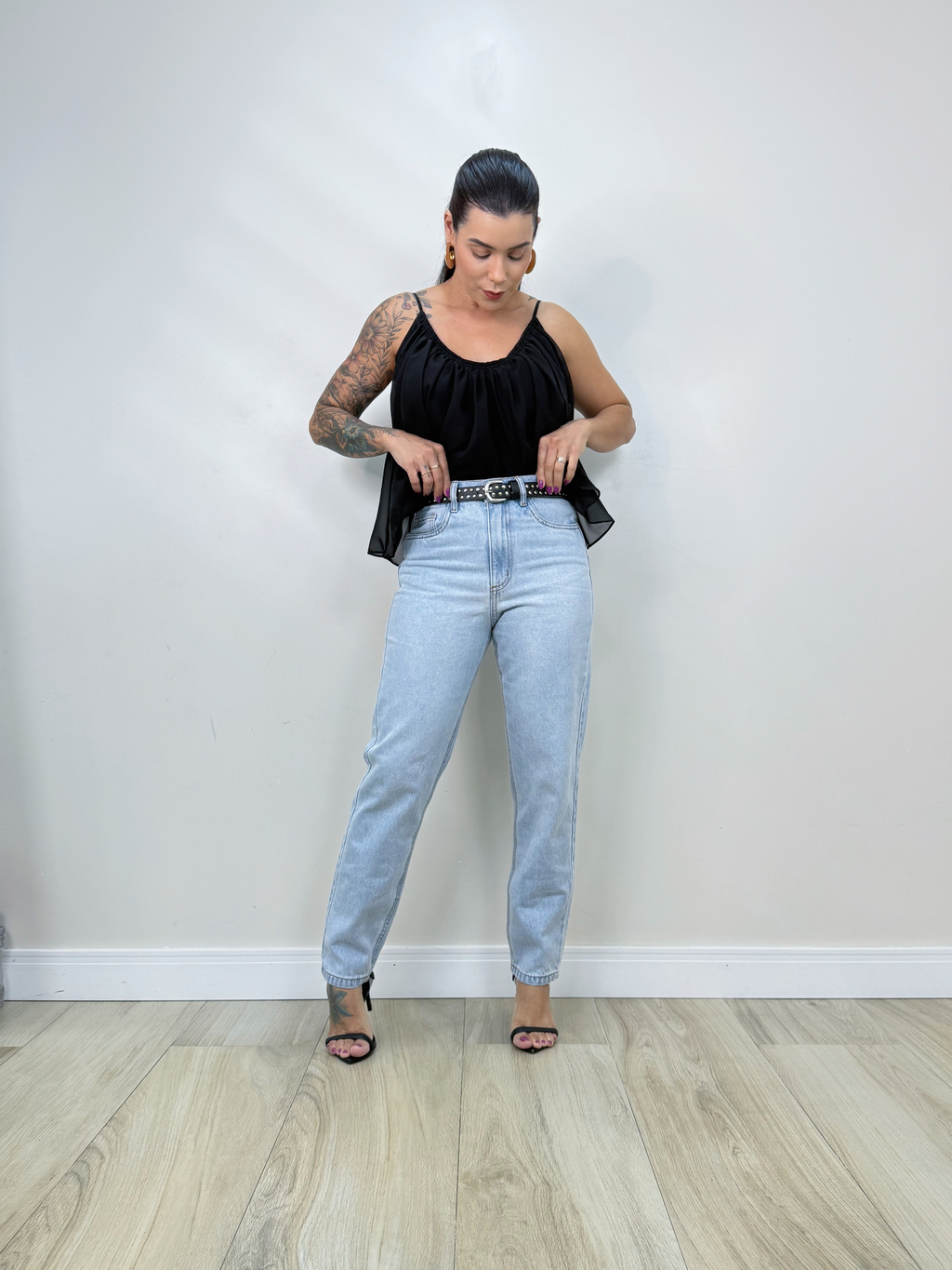 Com modelagem reta e cintura alta, essa calça jeans de lavagem clara se adapta facilmente ao seu corpo, garantindo um visual moderno e sofisticado. O fechamento por zíper e botão frontal proporciona praticidade, enquanto os bolsos frontais e traseiros oferecem funcionalidade. O cós com passantes permite o uso de cintos, completando o look.