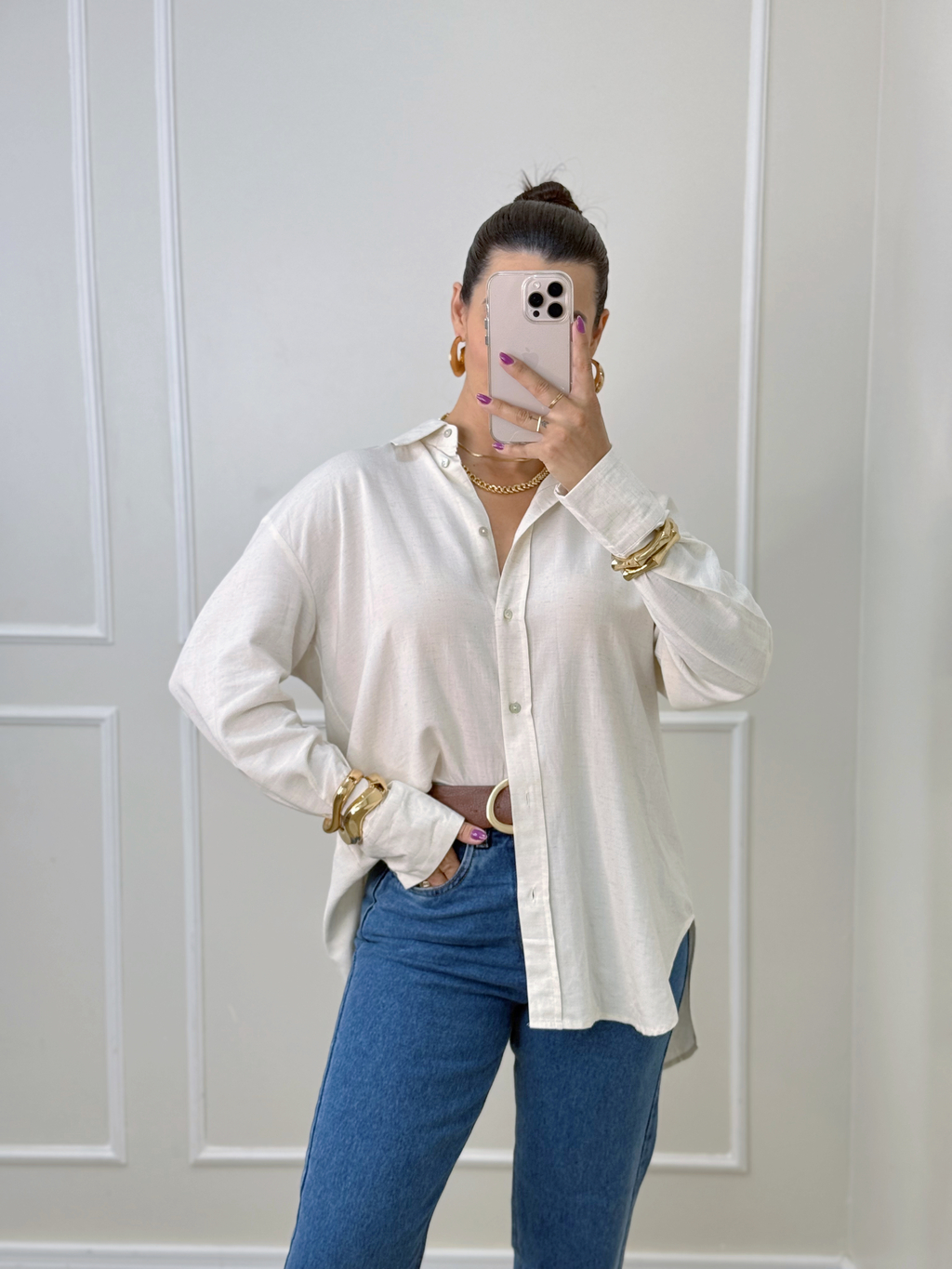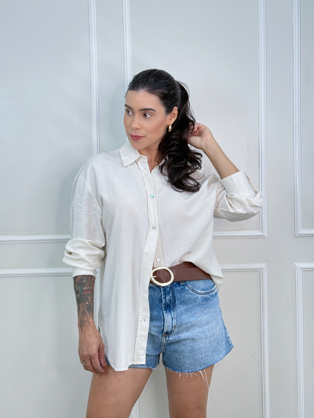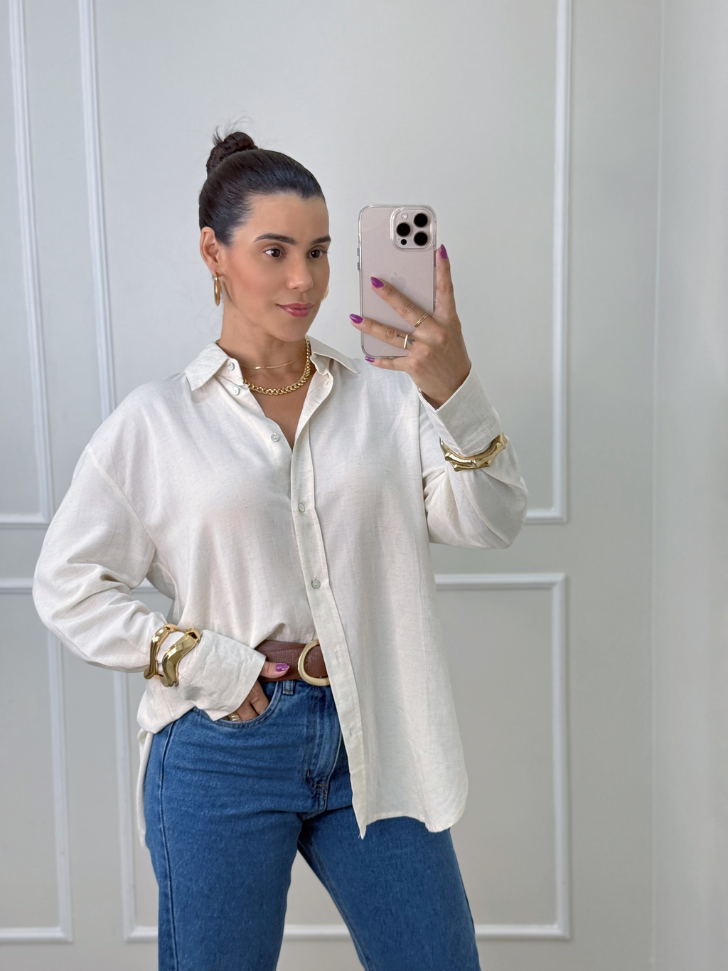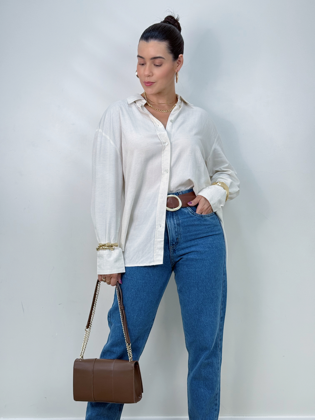 A Camisa Joaquina é perfeita para quem busca estilo e modernidade. Com modelagem ampla e solta, esta peça conta com botões frontais e traseiros, trazendo um toque moderno ao seu visual. A gola colarinho e os punhos largos ajustados por botões garantem um caimento elegante. Seu comprimento alongado permite versatilidade para diversas ocasiões.