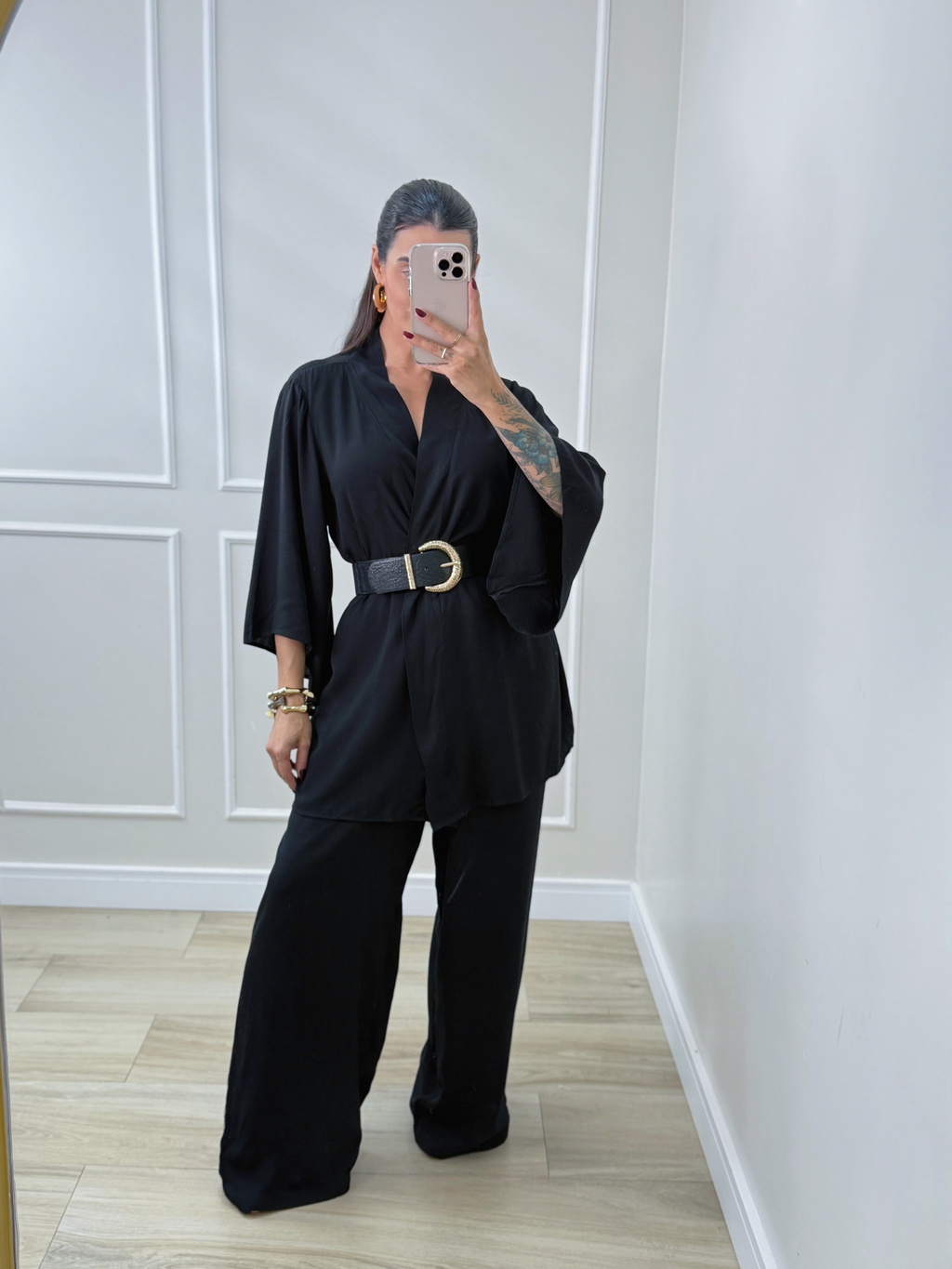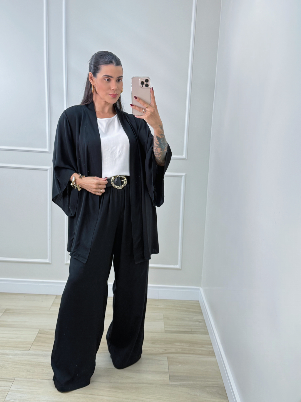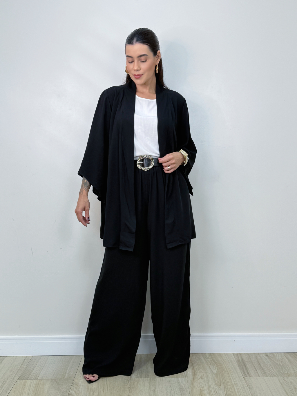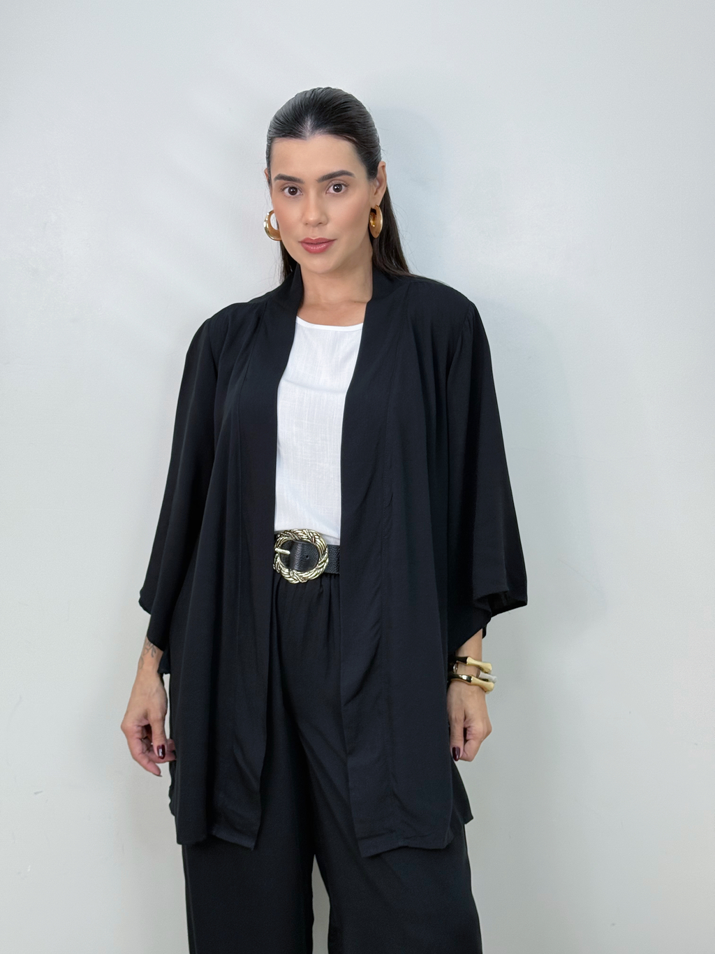 Com modelagem ampla e solta, ele proporciona conforto e liberdade de movimento. As mangas amplas e comprimento 7/8 garantem um visual leve e fluido. Possui recorte nas laterais e tamanho único que veste do P ao G se adaptam a diferentes biotipos. Confeccionado em 100% Viscose, seu tecido leve e fresco é perfeito para todas as estações.