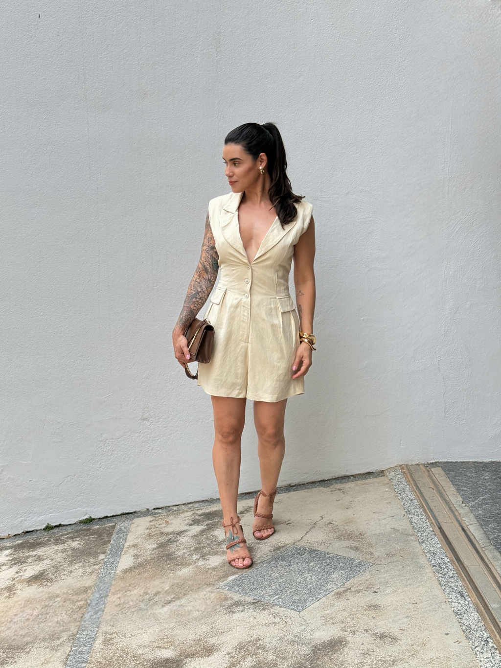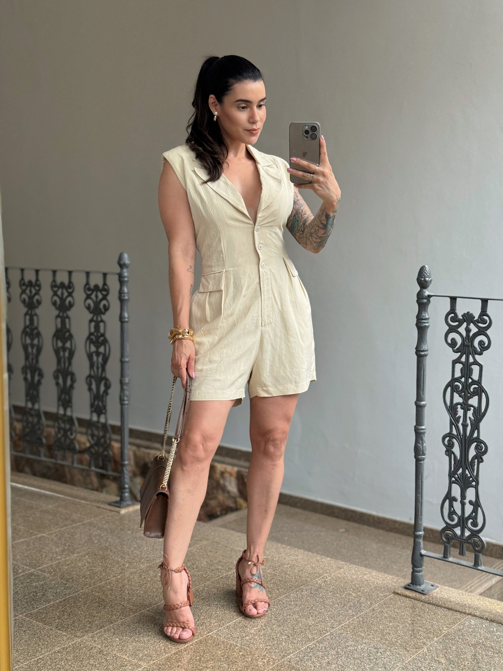 Com um decote em V e fechamento frontal por botões e zíper, este modelo traz um toque moderno. Suas ombreiras leves e pregas com lapelas frontais garantem um visual sofisticado, possui forro e comprimento médio que proporciona conforto. Ideal para diversas ocasiões, ele é versátil e fácil de combinar!