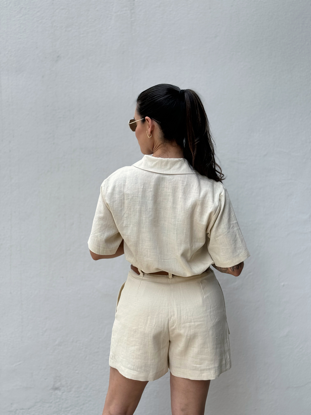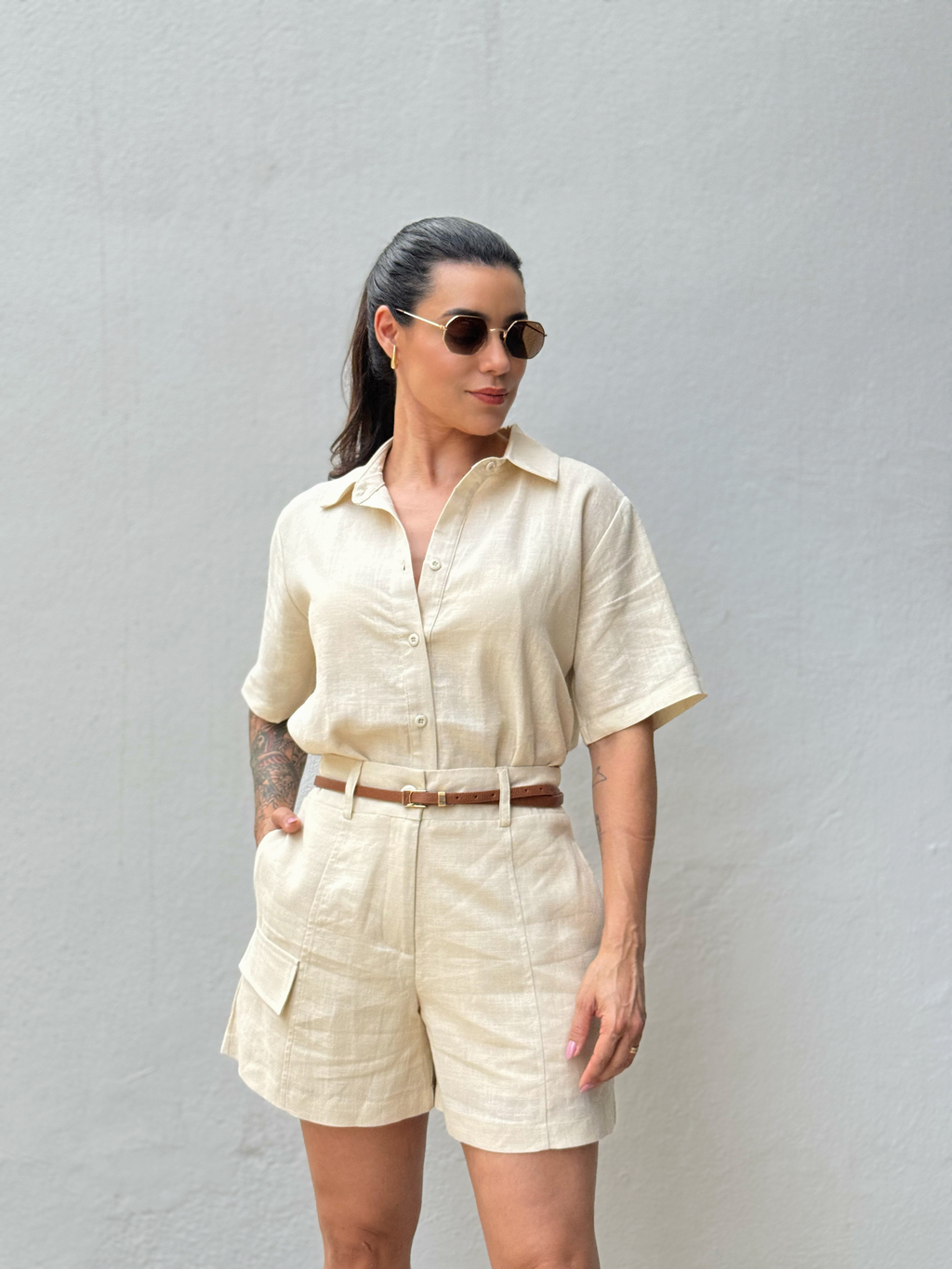 Confeccionado em uma mistura premium de 65% linho e 35% Liocel, este short se destaca pela sua leveza e frescor, perfeito para os dias mais quentes.