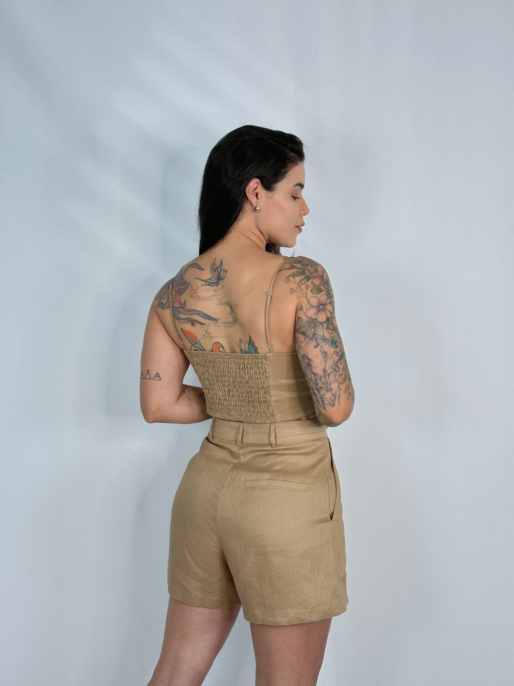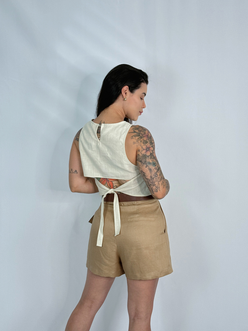Short confeccionado em linho puro, ideal para os dias quentes! Com cintura alta e modelagem soltinha, ele garante conforto e estilo em qualquer ocasião. Possui forro para maior comodidade e bolsos faca que são um charme à parte. O fechamento é feito por zíper e colchete gancho, garantindo um ajuste perfeito.