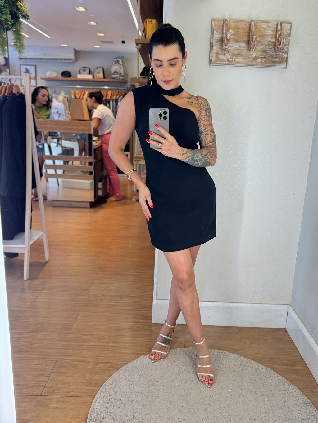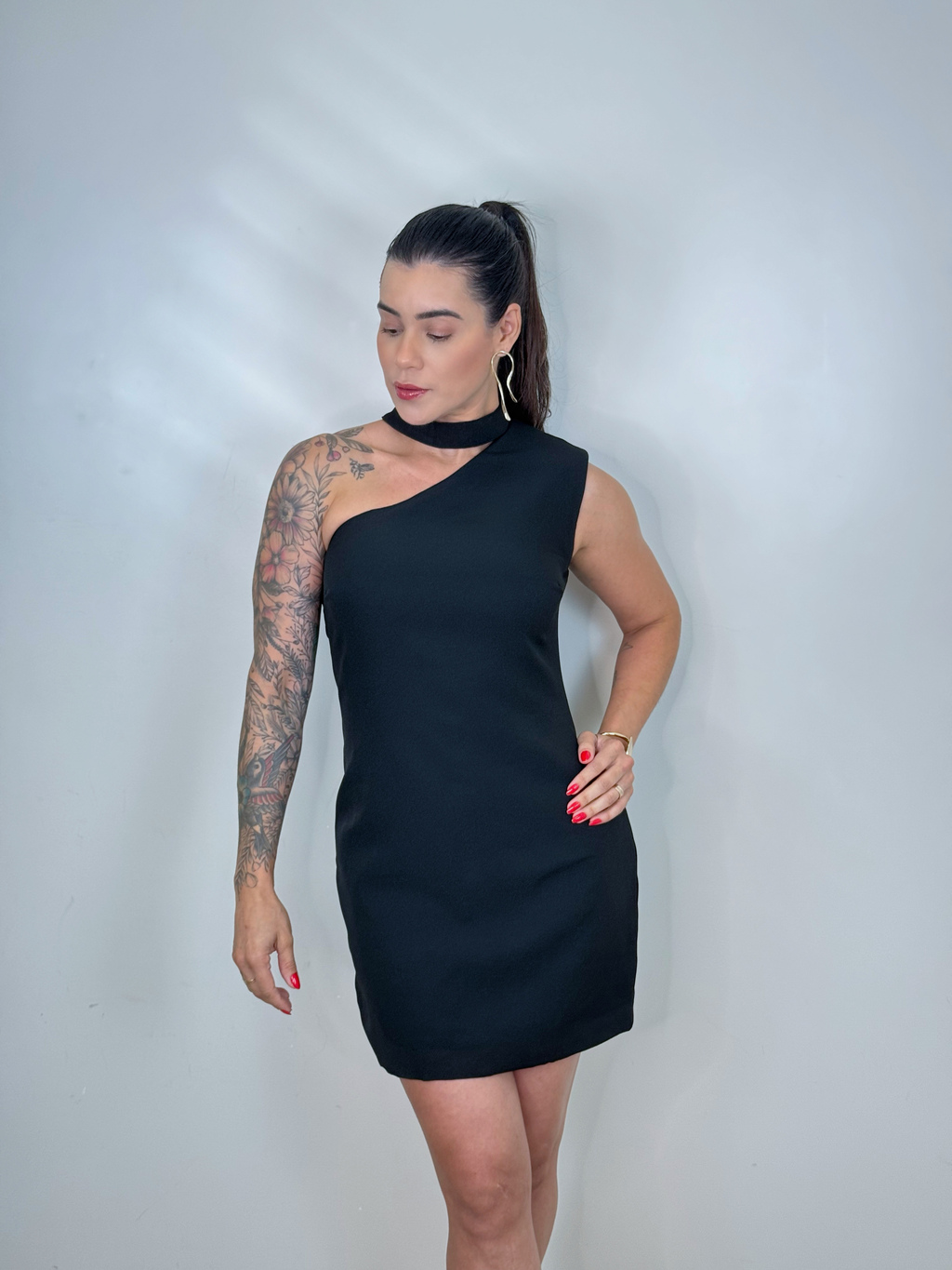 Com modelo mais ajustado e tecido encorpado e forrado, este vestido destaca-se pelo fechamento por zíper traseiro e sua assimetria na parte superior. O design sem mangas e o detalhe de golinha delicada complementam o charme do modelo um ombro só. Ideal para diversas ocasiões, ele garante um visual sofisticado e moderno.