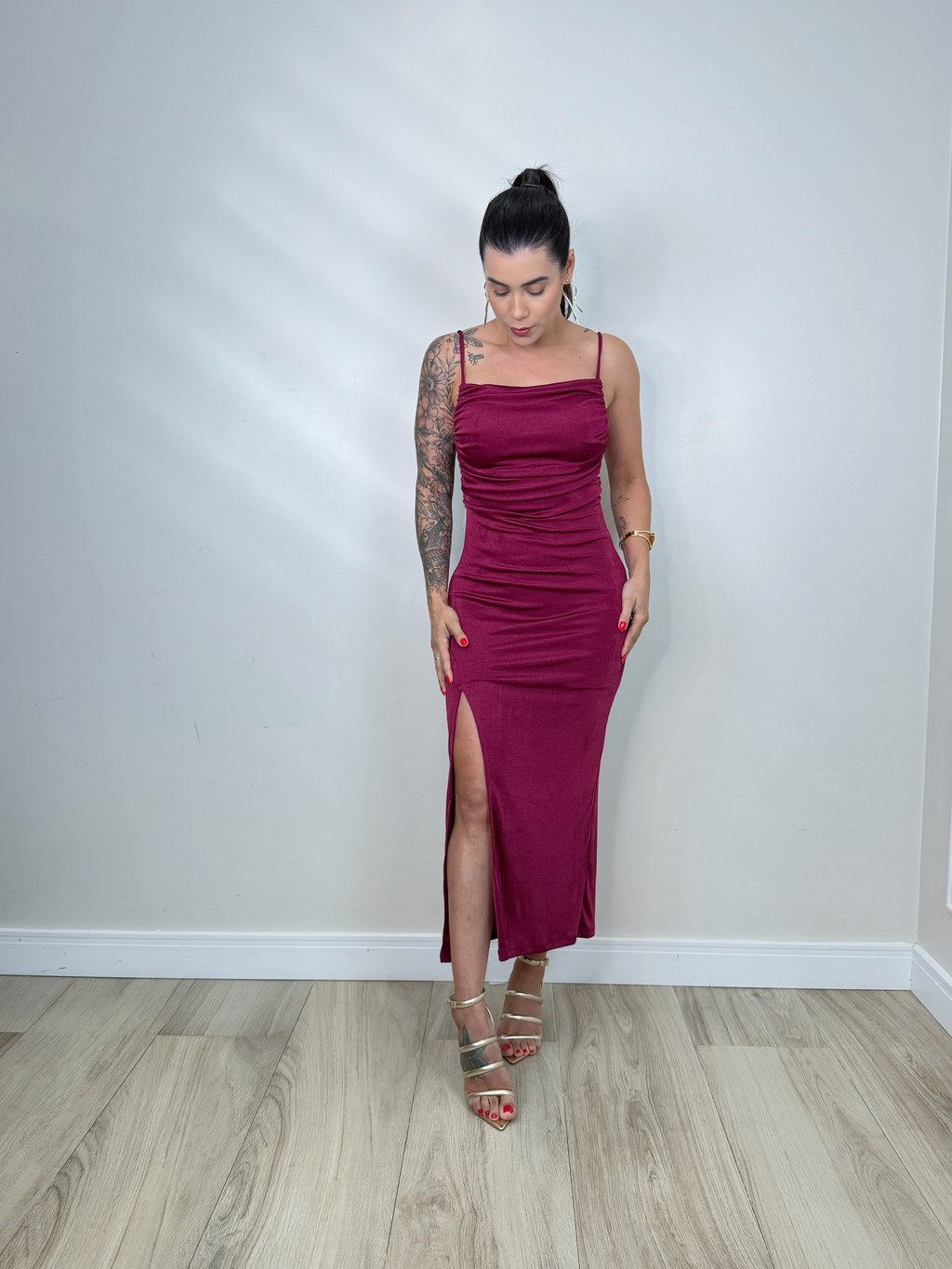 Vestido Midi Cibele Vinho é a escolha perfeita para mulheres que buscam conforto e elegância. Com alças finais e amarração nas costas, ele se ajusta ao corpo de forma única. O forro garante um caimento perfeito, enquanto o tecido que não amarrota e mais maleável proporciona liberdade de movimentos.