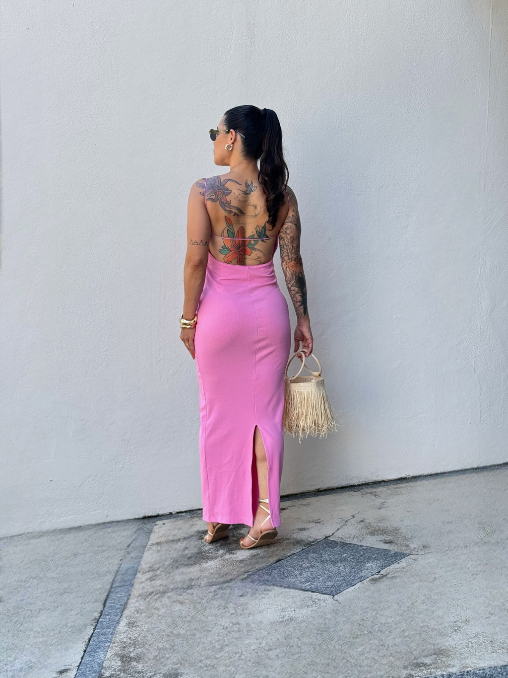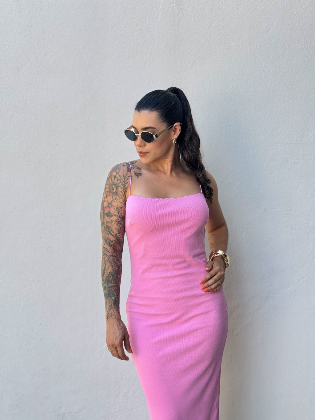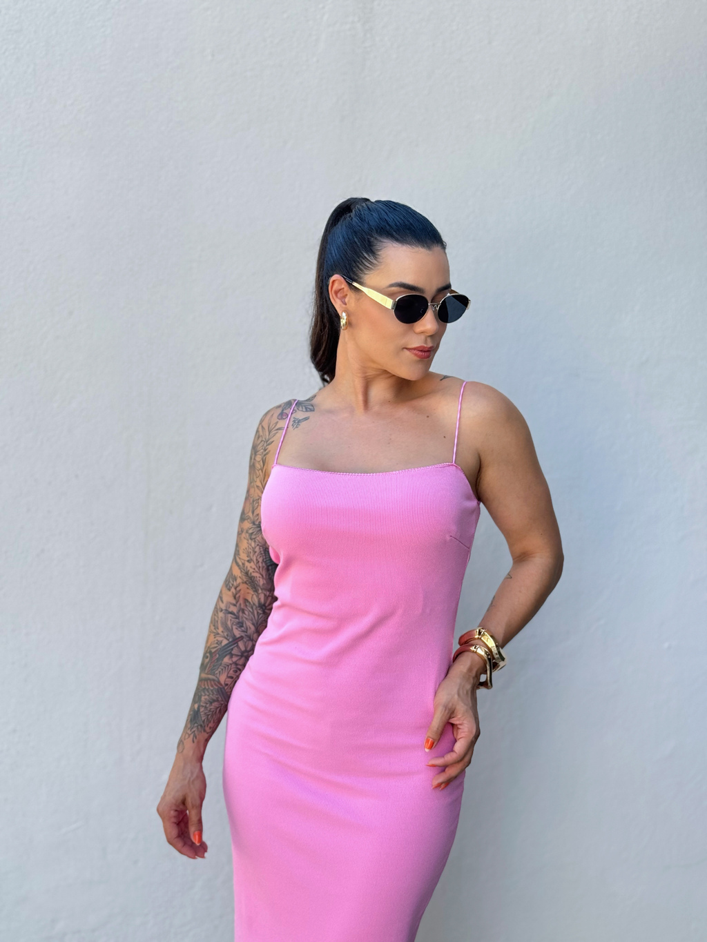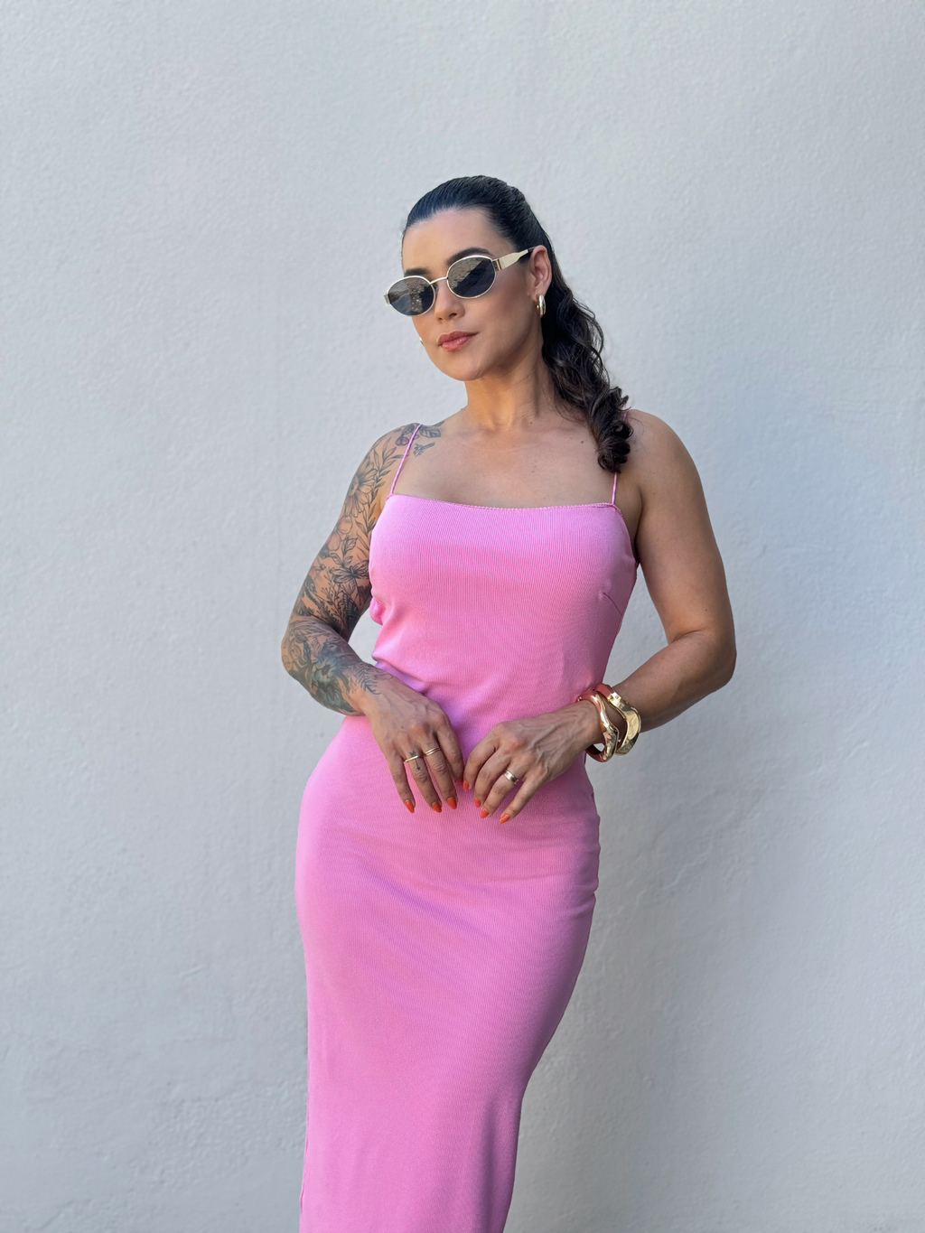 Perfeito para qualquer ocasião, este vestido canelado possui alças finas em elástico delicado e decote nas costas que valoriza a silhueta, ele é tanto elegante quanto confortável. Seu comprimento midi e o tecido canelado mais grossinho garantem um caimento perfeito.